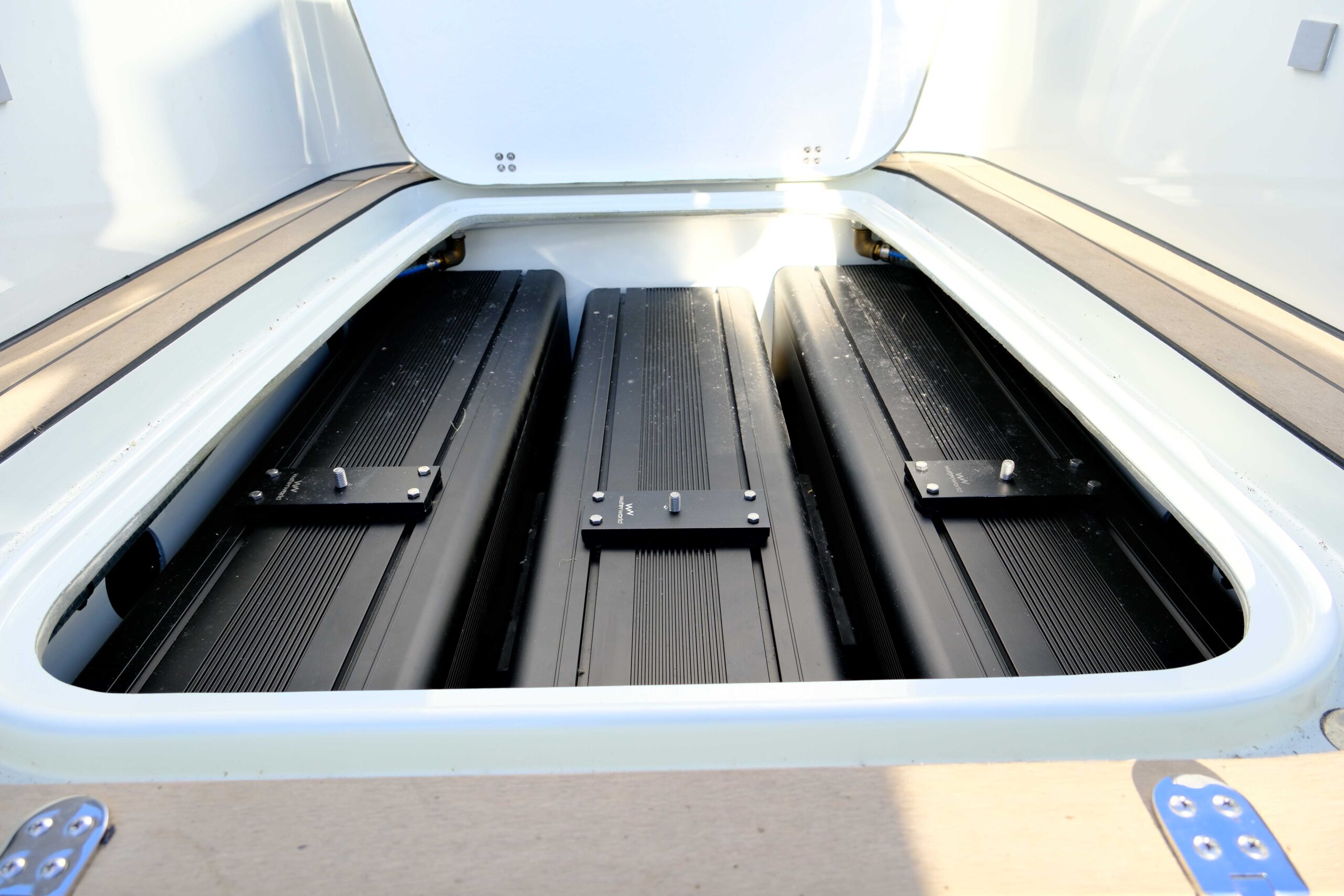 - Synthetic teak deck, fully glued and sealed