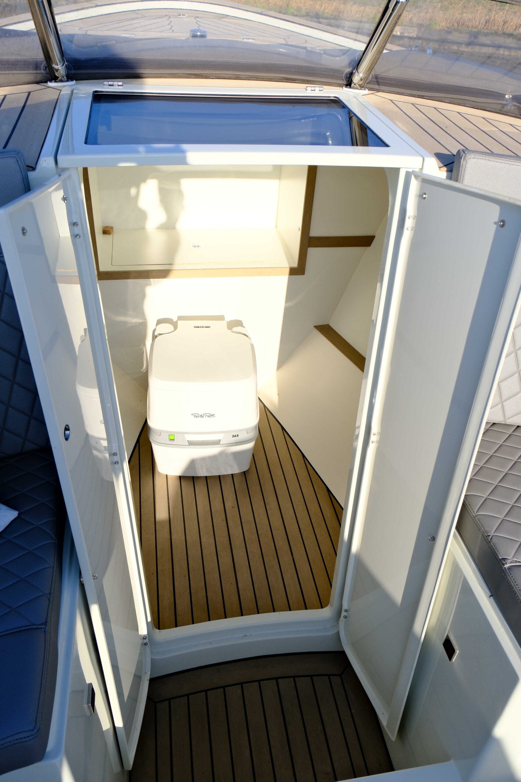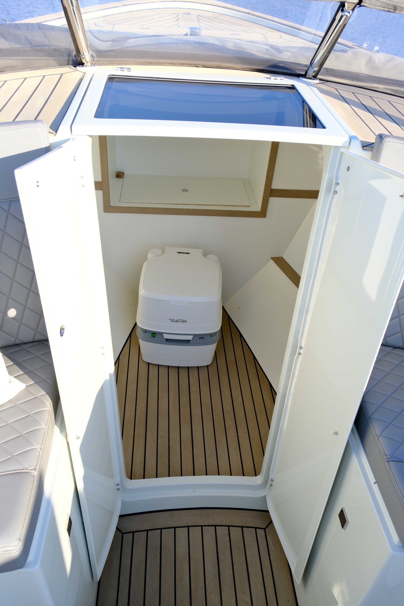 - Synthetic teak on toilet cabin deck and on the coaming