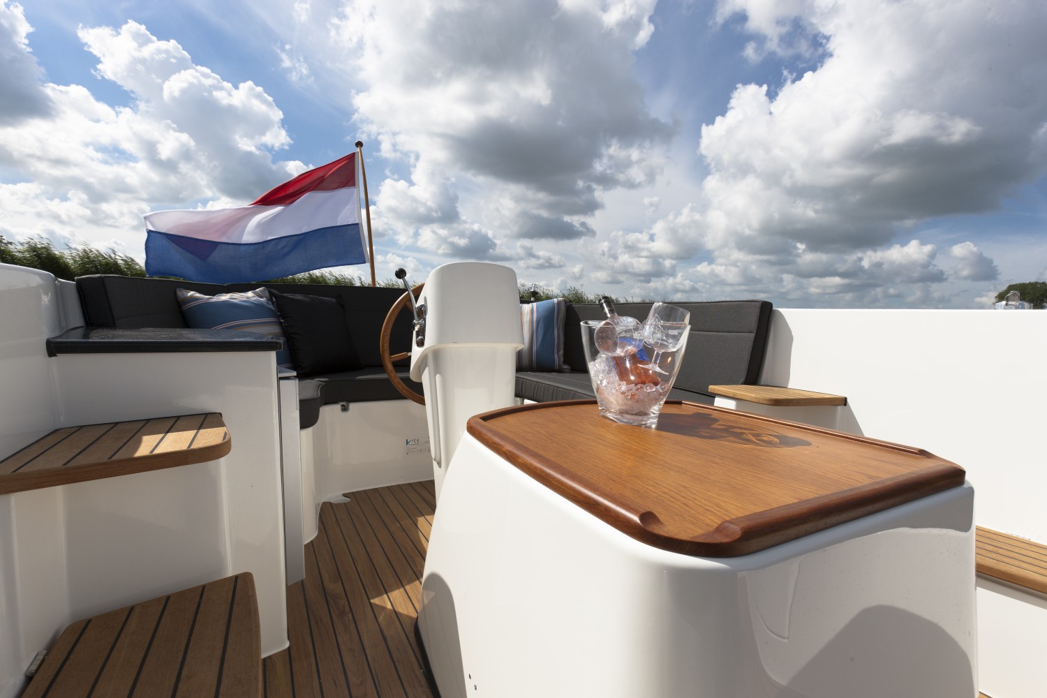 Standaard is deze sloep uitgevoerd met: Vetus 16 pk 2 cilinder dieselmotor